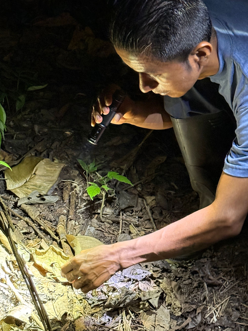After about an hour on the river, the sun went down and we docked for a hike through the forest along a very narrow and dark path. Our guides spotted and pointed out all manner of insects and tiny specimens, including tarantulas and crickets and lizards that look so much like the branches they sit on that you almost have to touch them and see them jump to know they are real.